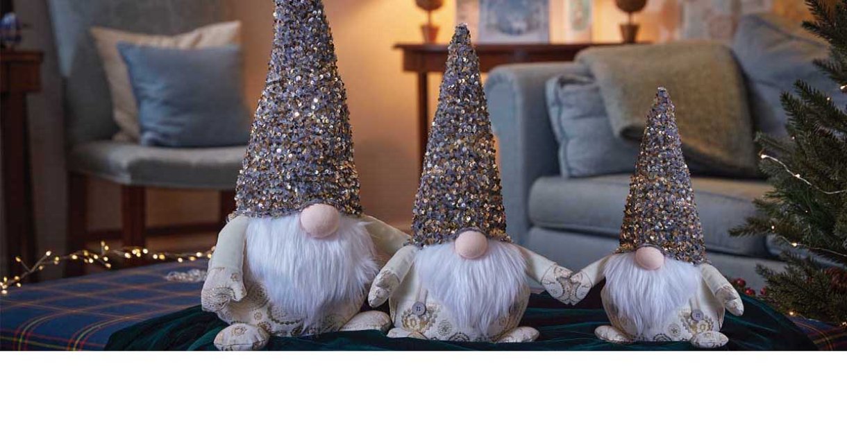A glittering collection of festive décor with everything to adorn the home and garden, from a warm welcome at the front door to the cosy surround of the fireplace. Home Our Brands Three Kings Christmas Lighting A stunning collection of festive illumination, from glass baubles to both classic and decorative string lights. SnowScenesStep into our brand-new selection of InLit, musical, moving village winter scenes! They create instant Christmas magic in any room … Looking GlassMirror, Mirror on the wall … who’s the brightest of them all?! These magical festive inlit mirrors are the latest must-have in Christmas décor. Christmas Ornamental Featuring festive figurines and seasonal décor, this collection delivers a touch of Christmas both inside and outside the home. Santa Figures Every home needs at least one authentic Father Christmas to complete its Festive ambience. Christmas Doormats For a festive winter welcome, these hand-crafted coir doormats are perfect for every threshold. Christmas Apparel Get ahead with our fun range of Festive Party accessories, form our cosy Christmas-themed Beanies to our Jingle-Tastic Bell Necklaces and Jingle Bell Headbands. Léger DécorNew collection of ultra-light decorative Christmas fun, which can be used to hang on trees or add a touch of pazzazz anywhere around the home. Vintage BaublesComprehensive selection of beautiful Vintage Baubles in 8 stunning designs, available as singles or multi-packs of 7 and 14, complete with an attractive presentation box. Christmas Faux Decor A festive collection of colour to adorn every home! These beautiful, seasonal ‘faux’ hanging baskets are entirely zero maintenance and realistic in every detail. Nutcrackers Our market-leading selection of Parading Nutcrackers range. Don’t miss out on Teddy Parade!, Caped Crackers! and Musical Drummer Cracker! – now that’s completely crackers … ! String Lights Our string lights are available in a range of lengths and colours - add some seasonal sparkle to trees, doorways, and so much more... Gonk Gang The Gang just got even bigger …! Now established as firm Three Kings favourites, we have added even more ‘Gonktastic’ magic. Don't forget to check out Pet Christmas as well... Don't forget to check out Pet Christmas as well...for all your furry friends Christmas need!